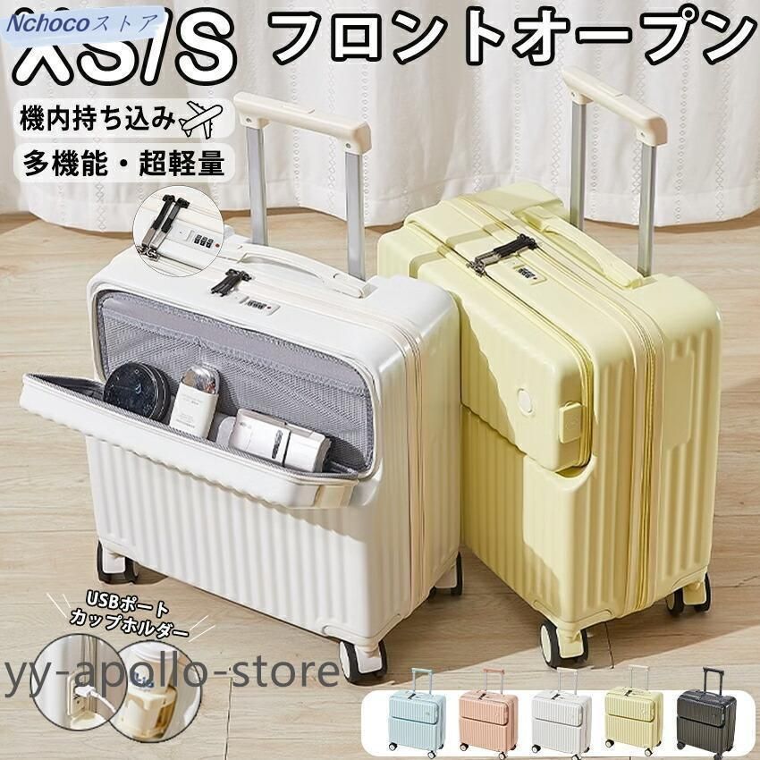 スーツケース フロントオープン 機内持ち込み 前開き キャリーケース ドリンクホルダー USBポート カップホルダー キャリーバッグ S SS 多機能スーツケース