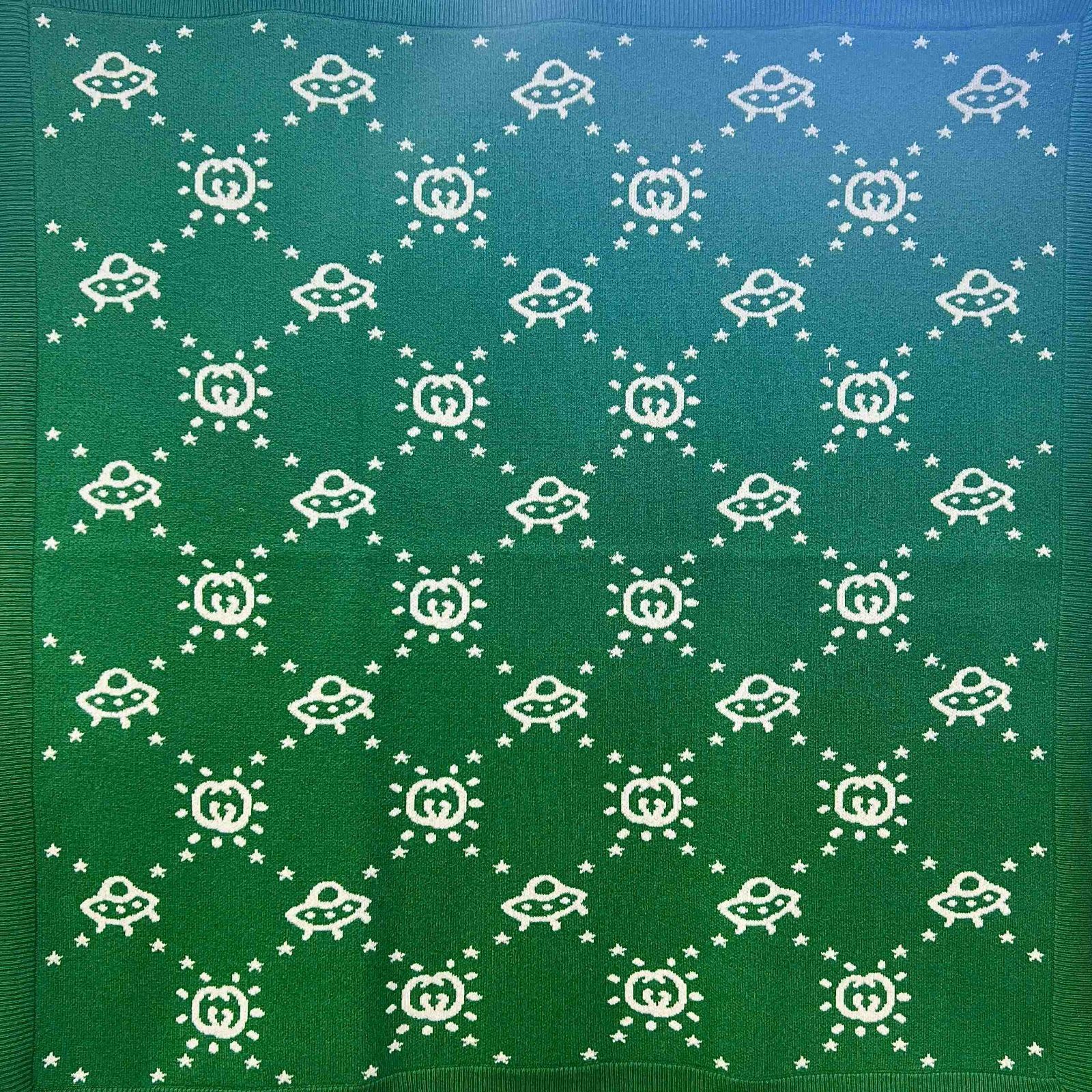 GUCCI グッチ GG UFO ロゴ ウール ブランケット 毛布 グリーン ホワイト ウール 85cm 箱 レディース キズ ファション小物 衣料品 ♥品 aua44301070611