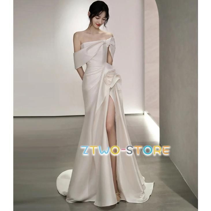 ウエディングドレス マーメイド トレーン ウェディングドレス 袖あり オフショルダー ドレス ロングドレス 深スリット 大きいサイズ 3L 白0218CYB88 登場
