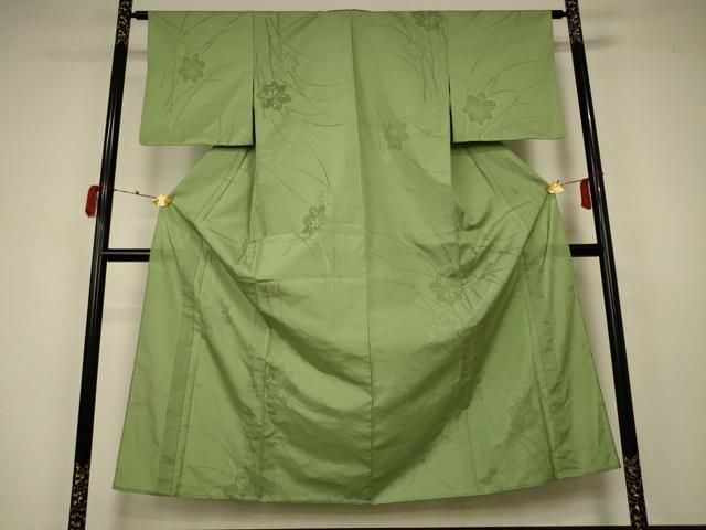 平和屋着物*夏物 色無地 草花紋紗 苗色 正絹 ♥ AABA2869jd