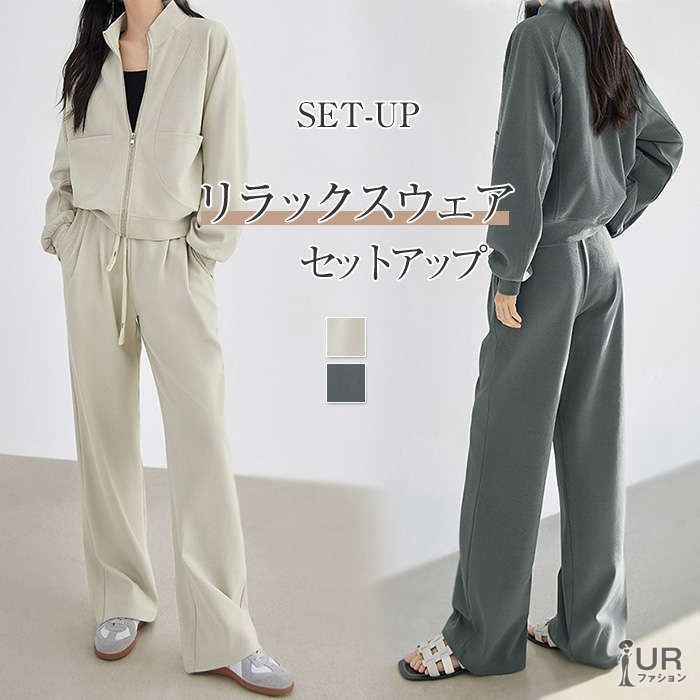 セットアップ レディース 秋 冬 春 キレイめ パンツ 長袖 ジャージ ジャケット 前開き ジップアップ スウェット ロングパンツ ロング イージーパンツ ワイド ハイウェスト 無地 部屋着 無地 大きいサイズmyys01