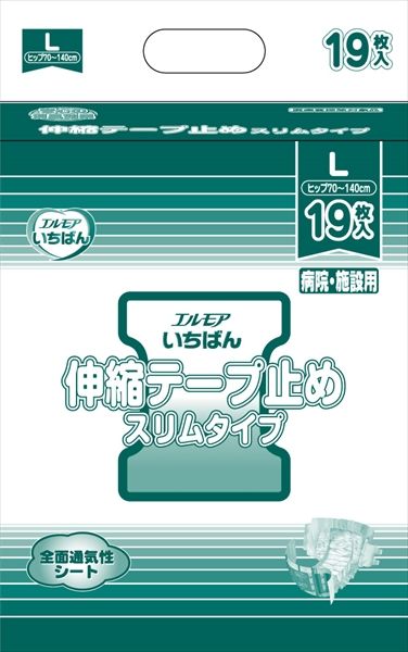 まとめ買い-4点セット エルモアいちばん 伸縮テープスリム L 19枚 カミ商事 大人用オムツ