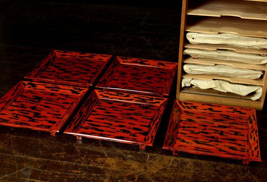 蔵A5194a 輪島塗 洗朱研出 懐石膳 根来角盆 会席九客