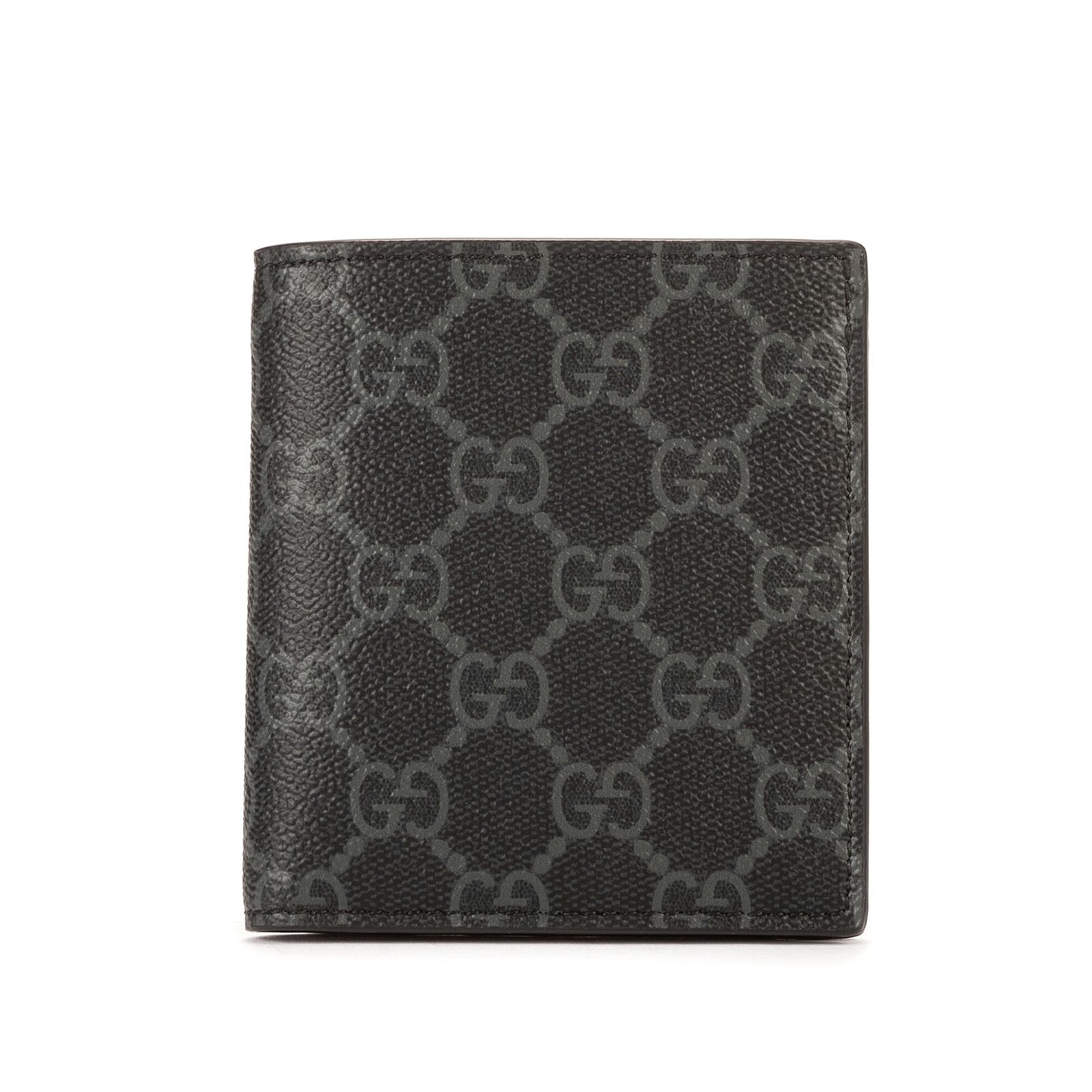 GUCCI グッチエンブレム二つ折り財布グレー|ブラックGGキャンバスA