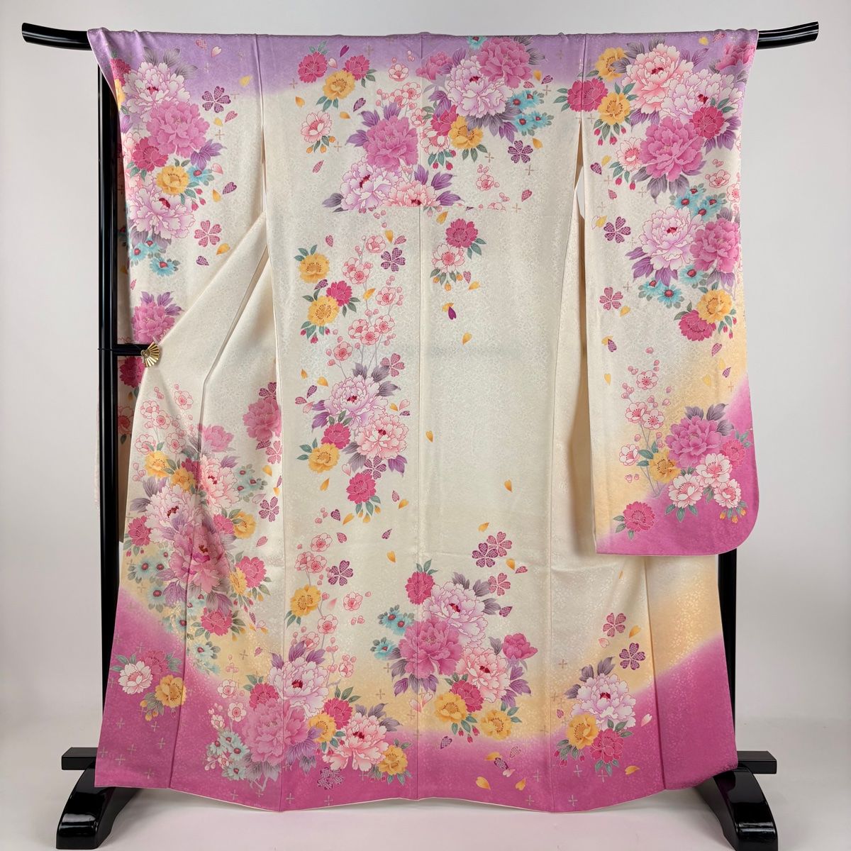 振袖 身丈163.5cm 裄丈69.5cm L 袷 押切もえ 落款 牡丹 枝梅 金通し 箔 クリーム 正絹