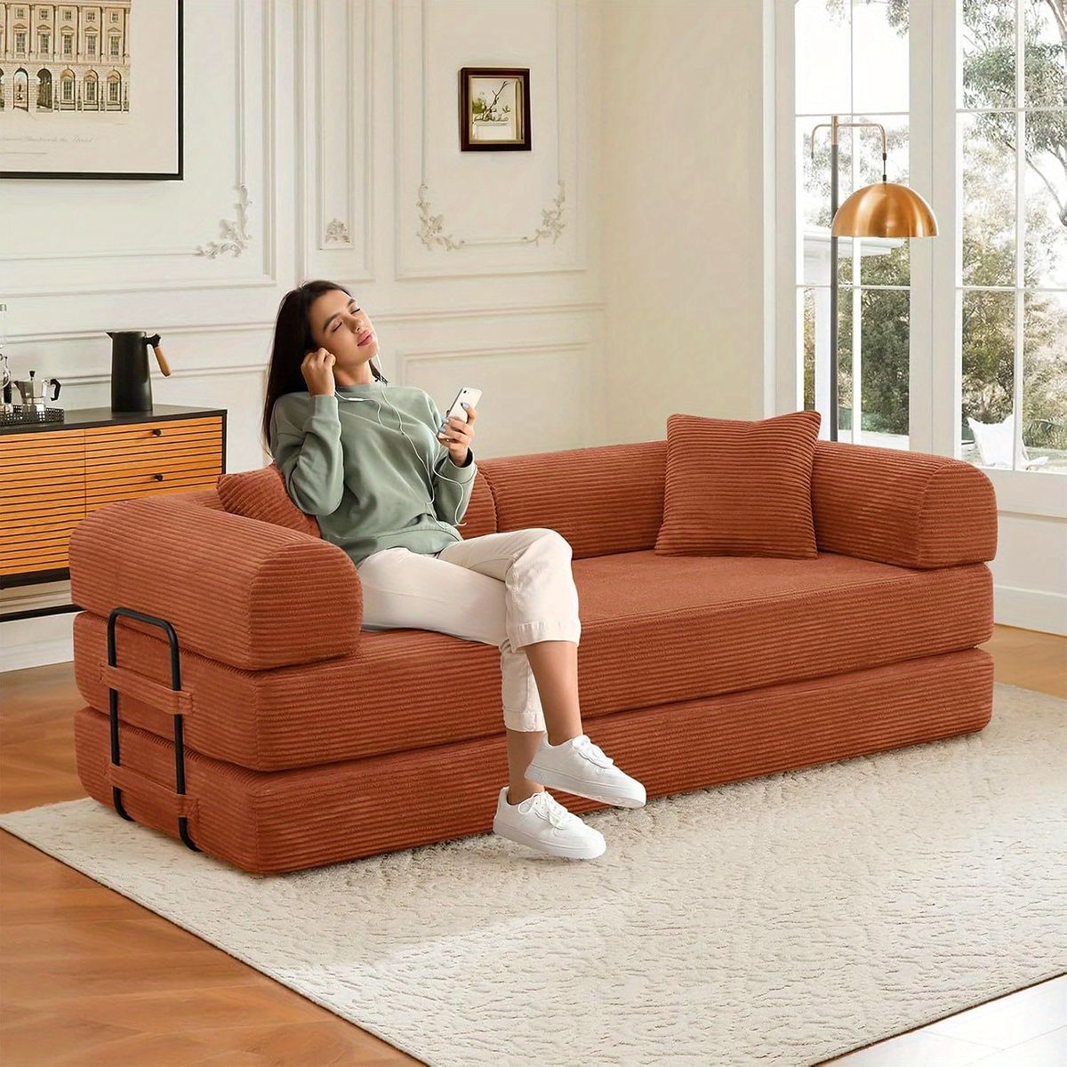 省スペース設計 コンバーチブルソファベッド オレンジ