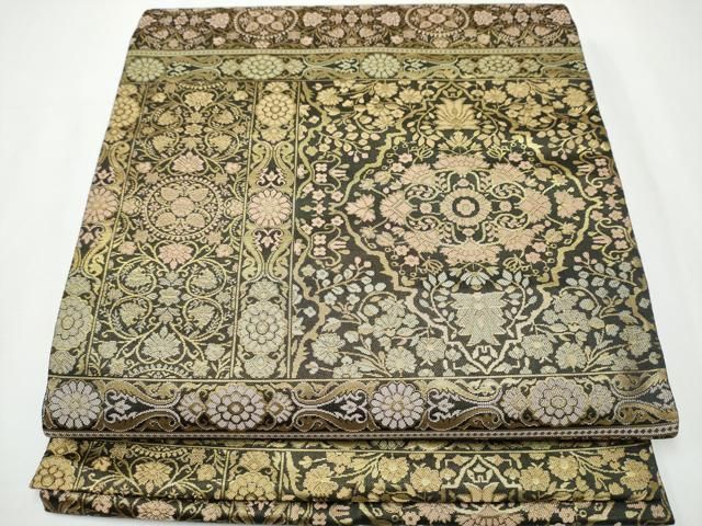 平和屋着物●西陣織 陰山織物謹製 箔屋清兵衛 六通柄袋帯 横段花唐草文 金糸 正絹 CAAX7591hy