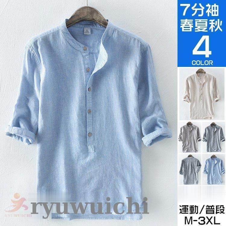 七分袖シャツ メンズ リネンシャツ カジュアル カプリシャツ スタンドカラー 5分袖 おしゃれ 40代 50代 夏服 父の日