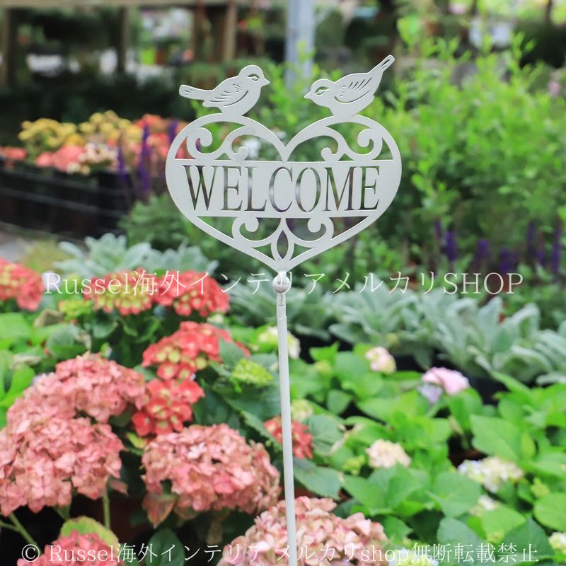 ガーデンピック ウェルカムサイン ガーデンオーナメント ガーデンスティック Welcome 鉄製 ホワイト ハート 鳥 ガーデニング 雑貨 ガーデン雑貨 ガーデンインテリア ガーデン インテリア 庭の装飾 お洒落 おしゃれ 8-14