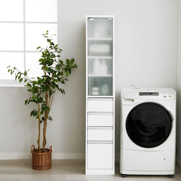 ランドリーチェスト 幅30cm ハイタイプ 高さ170cm ガラス扉付 すき間収納 スリム 大量収納 洗面所収納 ランドリー収納