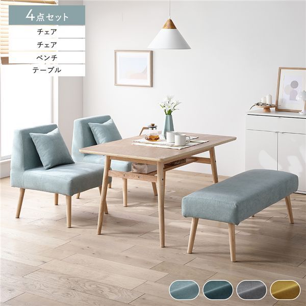 北欧ソファダイニング 4点セット テーブル + チェア 2脚 + ベンチ ライトブルー 洗えるカバー付き カバーリング レイアウト自由自在 ソファ ソファー ダイニングセット リビング ダイニング インテリア家具 組立品