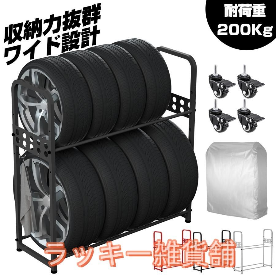 ♥タイヤラック タイヤラックカバー キャスター付 セット タイヤスタンド 二段式 縦置き 車用 タイヤ交換 タイヤ収納 劣化防止 8本 屋外 耐荷重200kg
