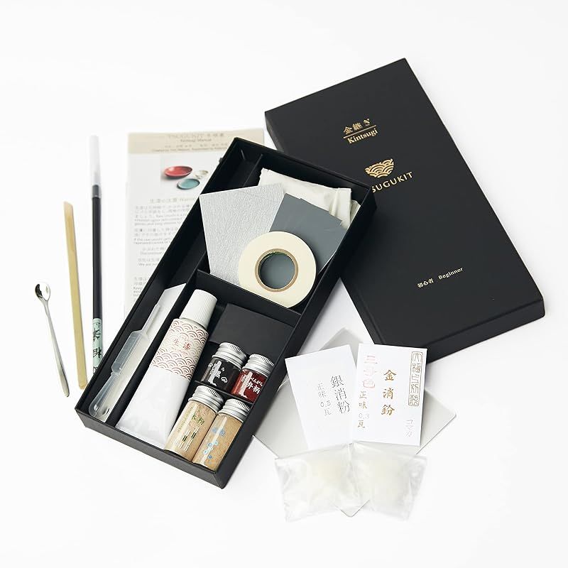 TSUGUKIT つぐキット プレミアム 金継ぎ工房が作った伝統金継ぎセット 初心者でも使える 動画解説付き 本漆 簡単|金継ぎキット | 金粉0.3g 銀粉0.5g 銀継ぎ 食器|陶器