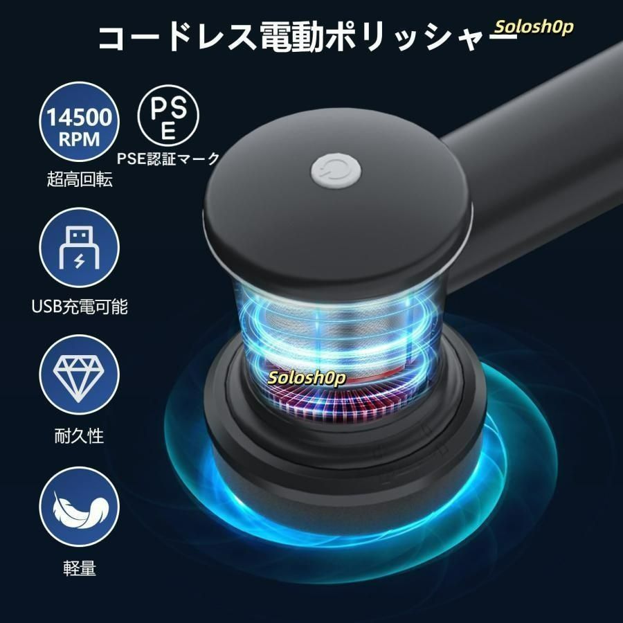 電動ポリッシャー コードレス 2025新款 Type-C充電式 ポリッシャー14500RPM 超高回転速度 3段階変速 小型 サンダポリシャー 研磨