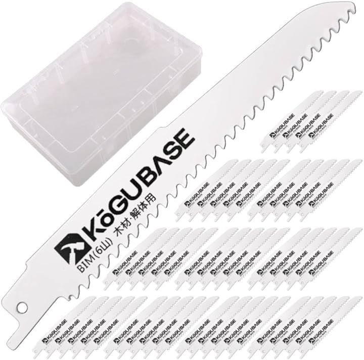 KōGU BASE レシプロソー 替刃 ブレード バイメタル ハードウッド 釘付き木材 プラスチック 複合材料解体用 150mm 6山 厚み1.3mm 50枚 rsblade3 白