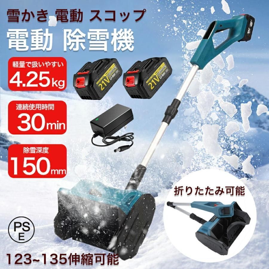 電動除雪機 充電式 コードレス 21V大容量バッテリー付き 除雪幅30cm 素早い除雪 電動スノースロー 伸縮 電動 除雪機 雪かき ショベル雪か 軽量 除雪用品
