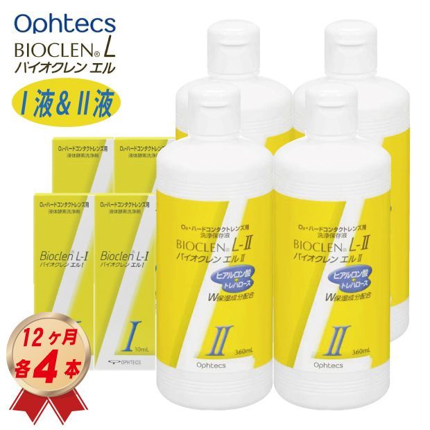 I & II 各4本 12ヶ月パック オフテクス バイオクレン エル I 液& II 液 各4本 4950055207212 ハードレンズ用 4950055107093
