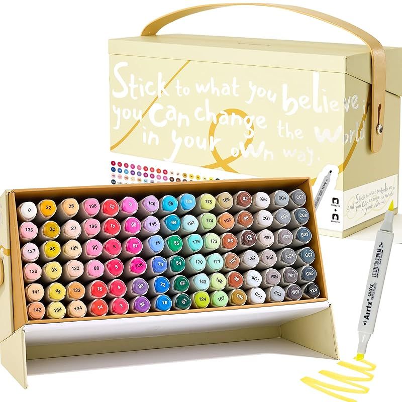 Arrtx OROS マーカーペン イラストマーカー アートマーカー 90色セット 筆と鑿の両端 速乾 色褪せしにくい コミック|ギフト|デザイン|漫画|スケッチ|塗り絵|アート用 画材