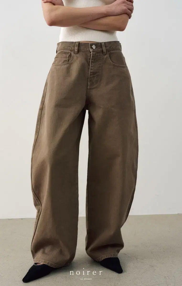 NOIRER FOR WOMAN ノイアーフォーウーマン コットン 死にかけている 曲線 デニム パンツ 茶色
