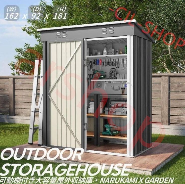 日本倉急速発送 可動棚付き 物置 屋外 スチール 倉庫 戸外収納庫 幅162*奥行き92*高181 物置き おしゃれ 大型 収納庫 屋外物置 防さび ベランダ 防水 ドア 引戸 スチール物置 屋外収納 ロック付き ガーデニング 庭