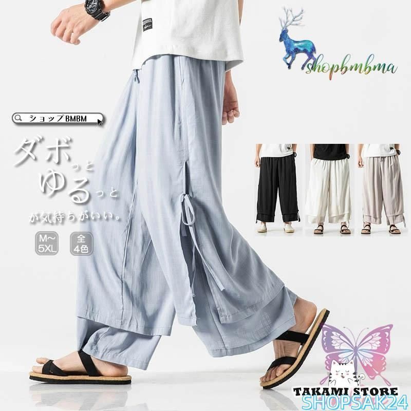 ワイドパンツ メンズ クセになる開放感 ガウチョパンツ 変形 リラックスパンツ スカーチョ 袴パンツ スカンツ 透け感 涼しい エスニック 民族 ボトムス 個性686