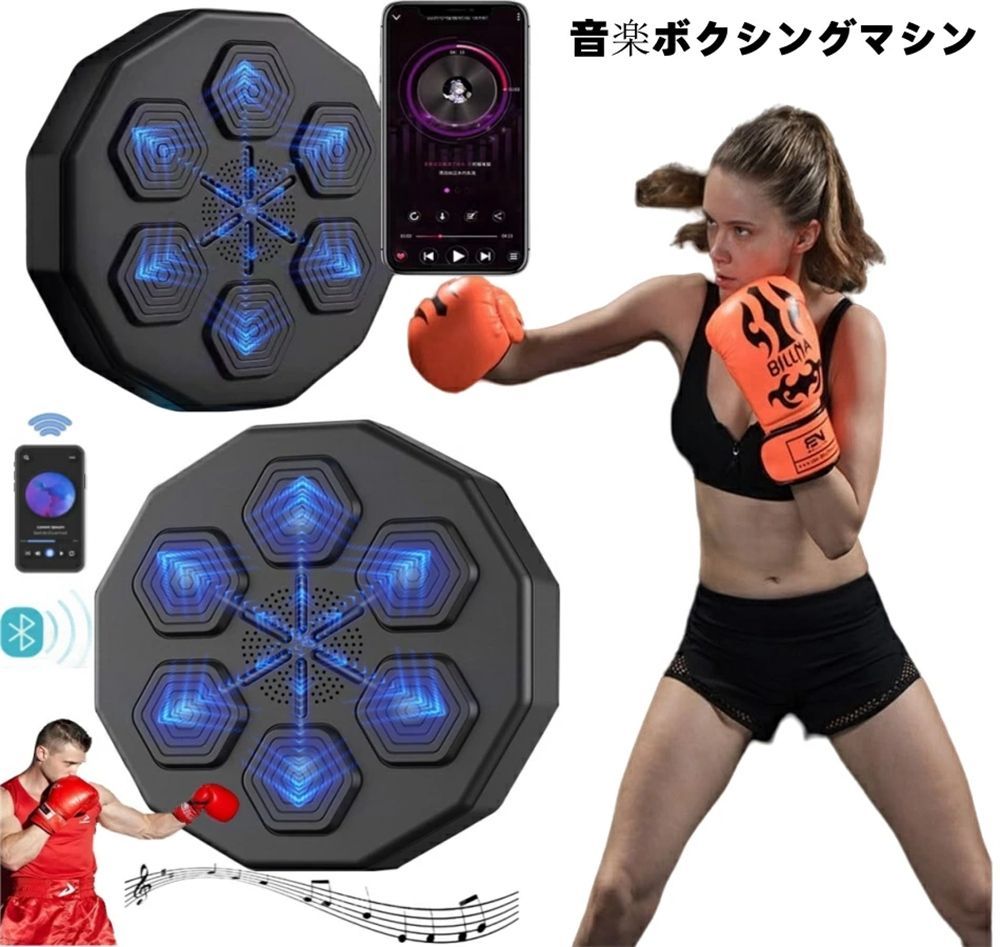 音楽ボクシングマシン レッドグローブ付き スマート ディスプレイ付き 子供 大人 壁パンチングバッグ スマート