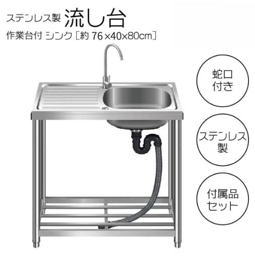 流し台 シンク ガーデンシンク ステンレス 向き変更 屋外 簡易式 錆びに強い 簡単取付 工場 農園 G76 約横76x奥行40x高さ80cm