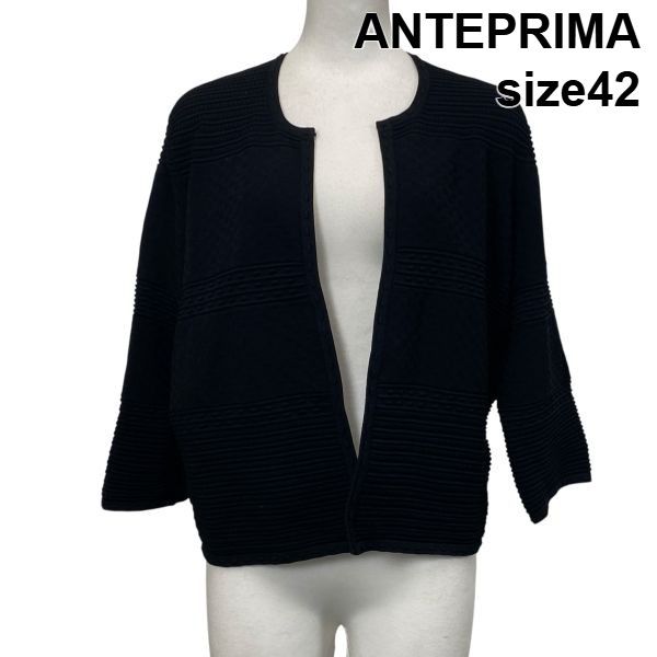 ◆ アンテプリマ ANTEPRIMA ニットカーディガン 七分袖 黒 ブラック 42 L 11号 レディース S5V460