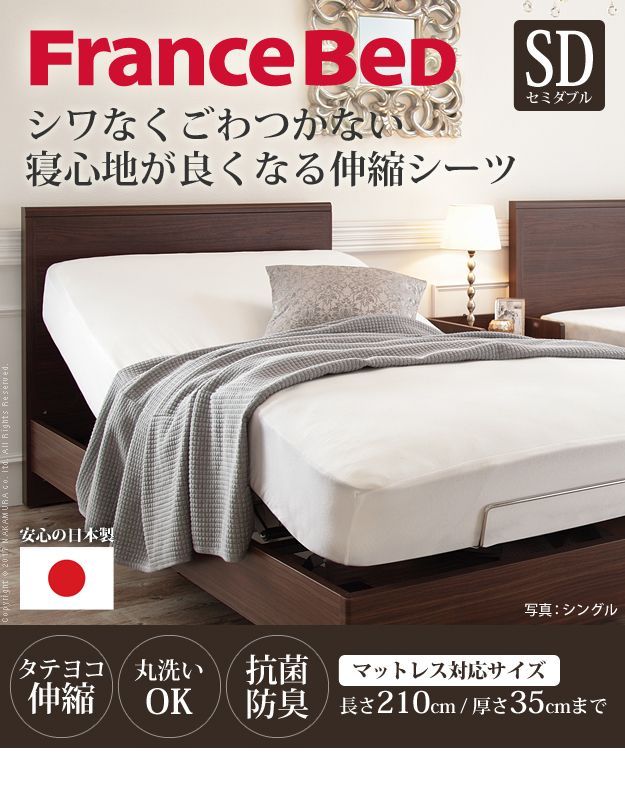 ボックスシーツ セミダブル ベッド SWシーツ フランスベッド 伸縮ボックスシーツ セミダブルサイズ 寝具 マットレス シーツ 伸縮フィット 丸洗い 洗える ニット 抗菌防臭加工 国産 肌触りがいい 61400420 OA
