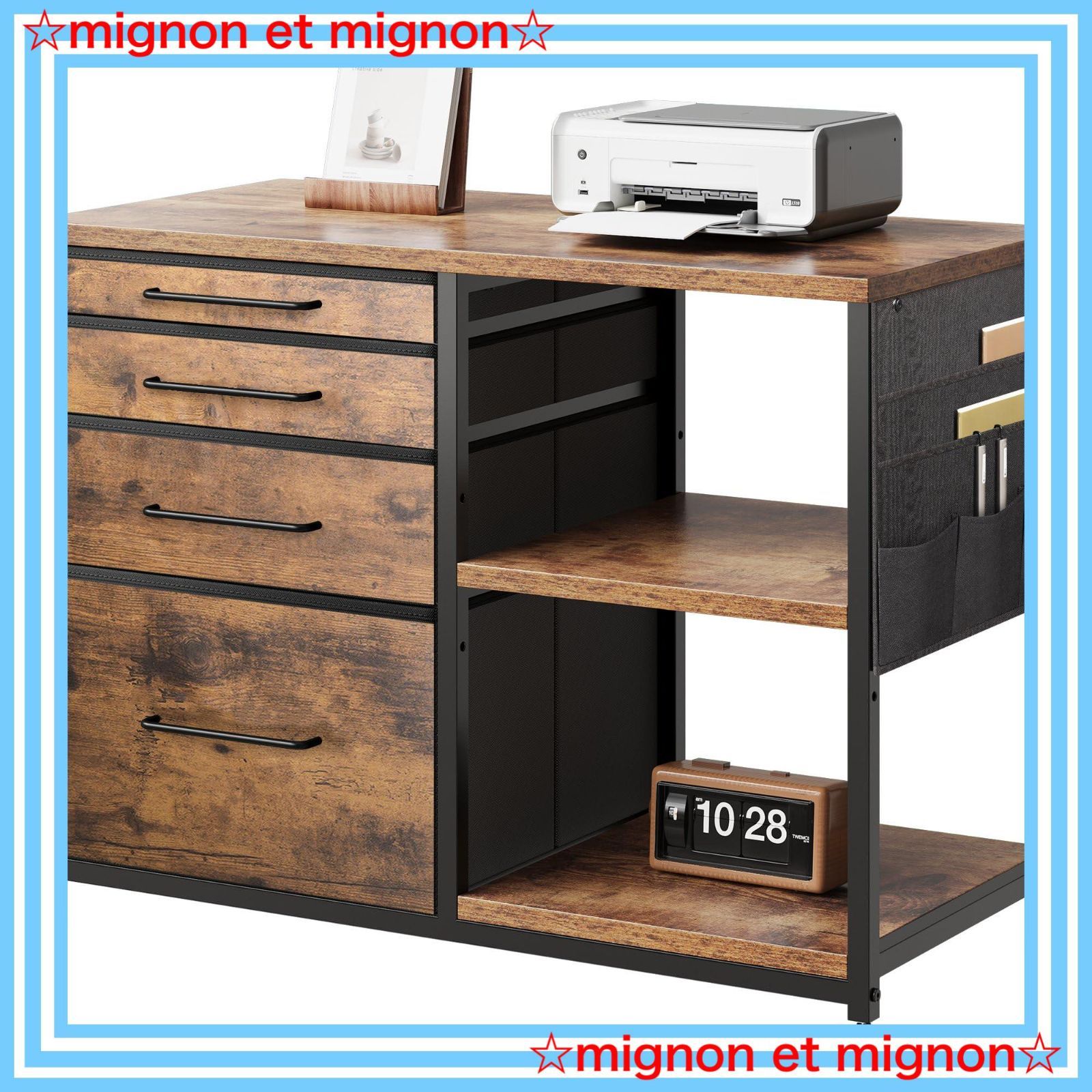 即日発送 層板付き サイドワゴン 袖机 4段 オフィスワゴン 布製 A4対応 プリンター台 デスクワゴン 大容量 キャスター付き サイドキャビネット デスク下収納 幅750*奥行400*高さ650mm YeTom ビンテージ