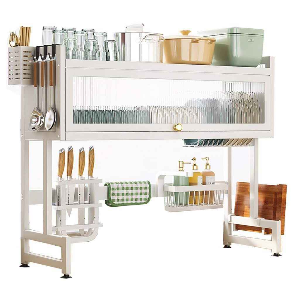 在庫処分 ディッシュラック 水切り棚 水切りラック キッチン 水切りラック 水切りラック キッチンドレイナー シンク上 滑り止め シンク上 省スペース 大容量 長さ85cm PFLife ホワイト