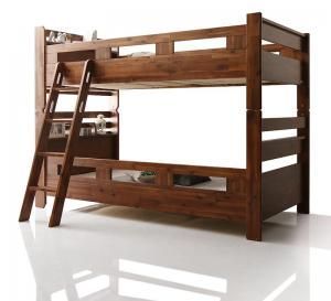 モダンデザイン 棚 コンセント付きアカシア材二段ベッド Redondo レドンド ベッドフレームのみ シングル 代引不可