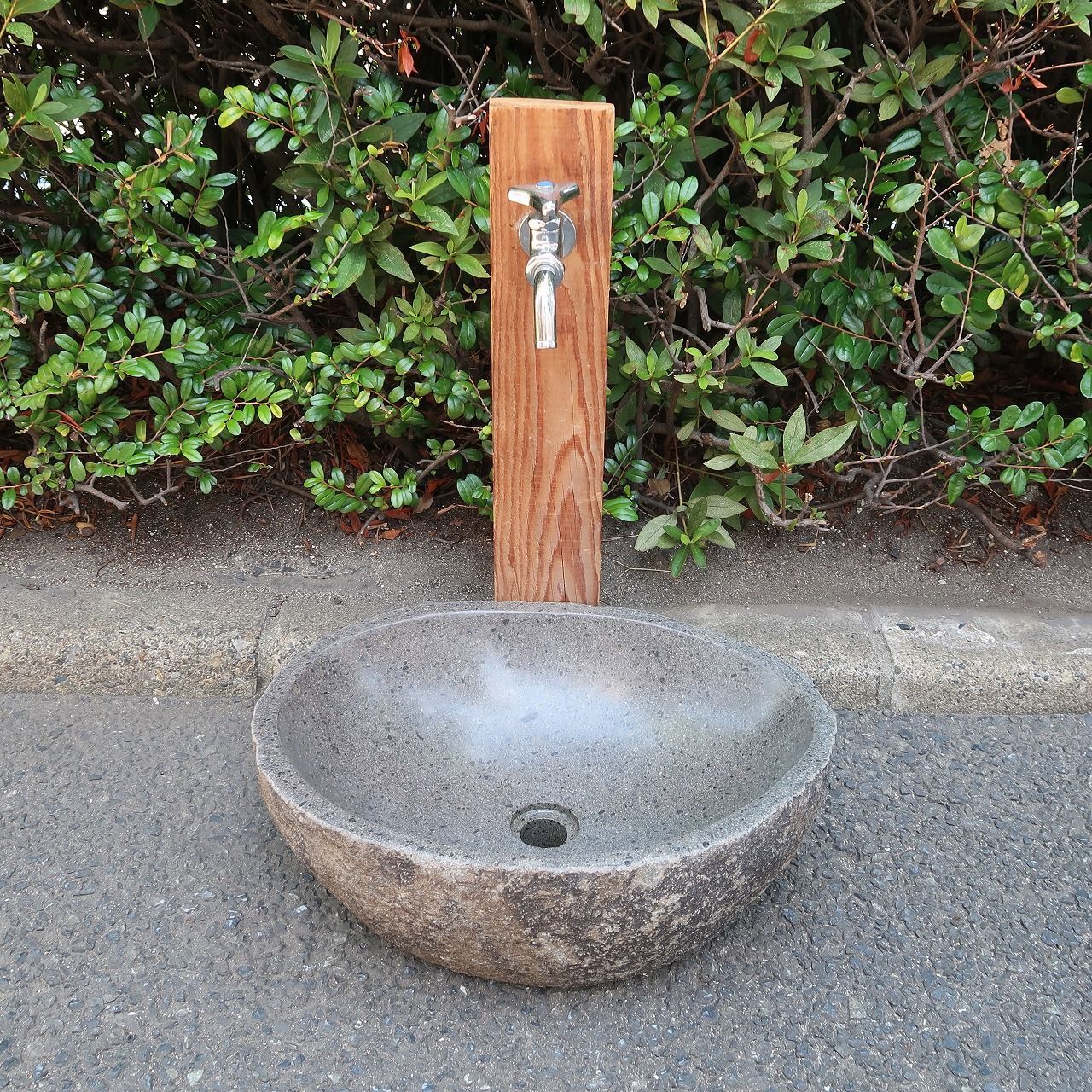 天然石 洗面ボウル リバーストーン L 47X36 立水栓水受け皿 シンク 洗面ボール 庭 ガーデン 手洗い鉢 河石 川石 DIY 250971