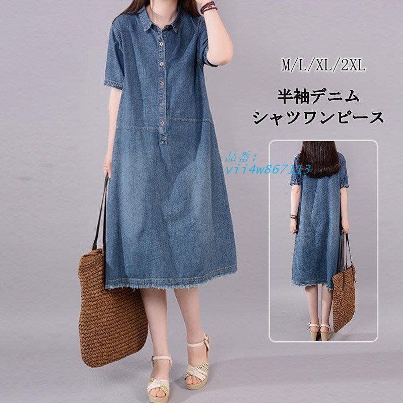 ワンピース ロングワンピース デニムワンピース 夏 レディース シャツワンピース チュニック 体型カバー デニム 50代 半袖 大きいサイズ 40代 無地