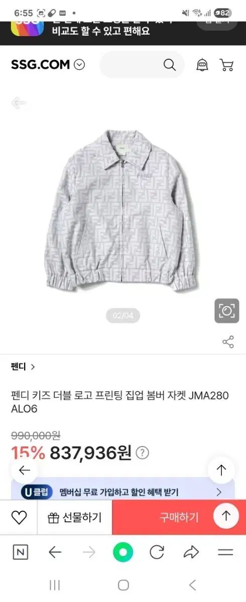 テクチェ フェンディキッズ ダブルロゴ プリンティング ジップアップ ブルゾン