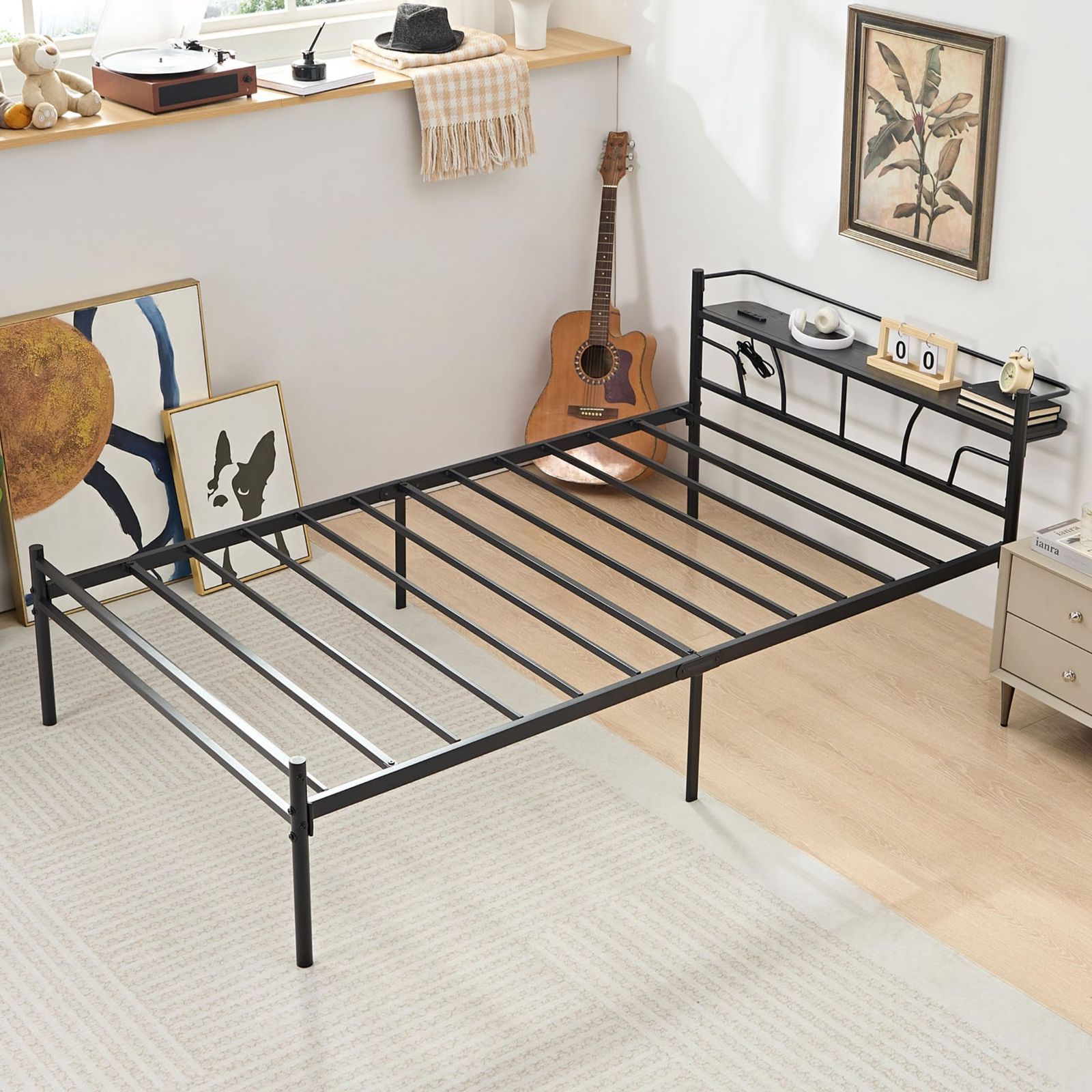 在庫処分 宮棚付き 2口コンセント付き 耐荷重300KG セミダブル 静音 安定性 ベッドフレーム 通気性 ベッド スチール製 組立簡単 VECELO ブラック