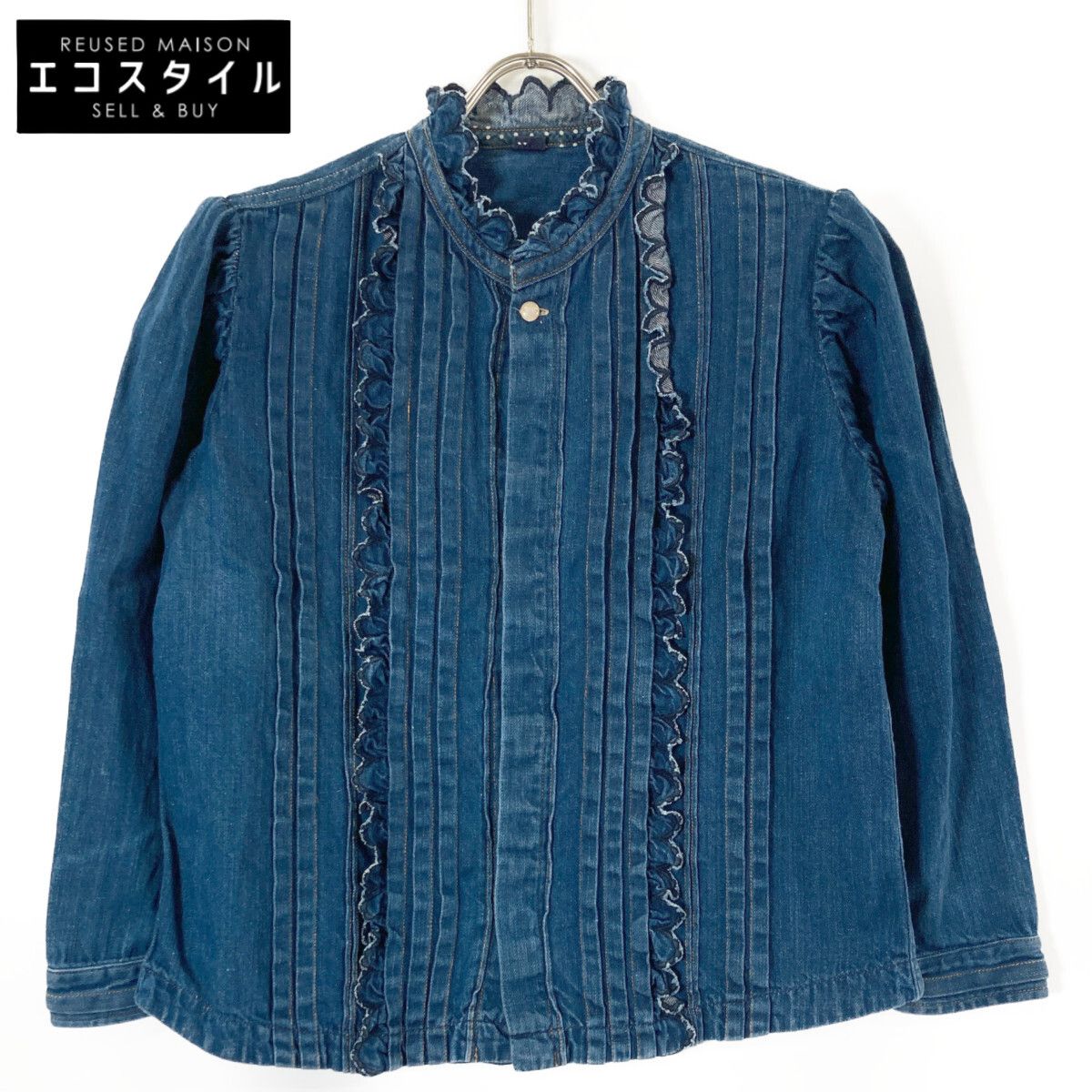45R フォーティファイブ アール 7073052 インディゴ コットン×リネン 小麦デニムのタックレースブラウス 2