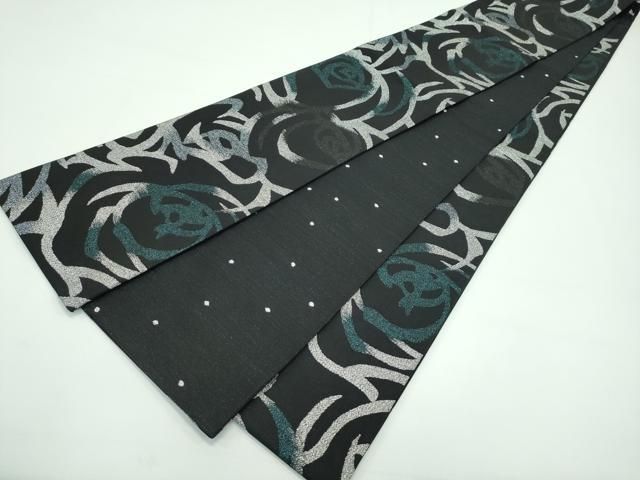 平和屋着物 上 両面 半幅帯 薔薇 バラ 黒地 銀糸 おゝみ北川 ♥ CZAA3483s5