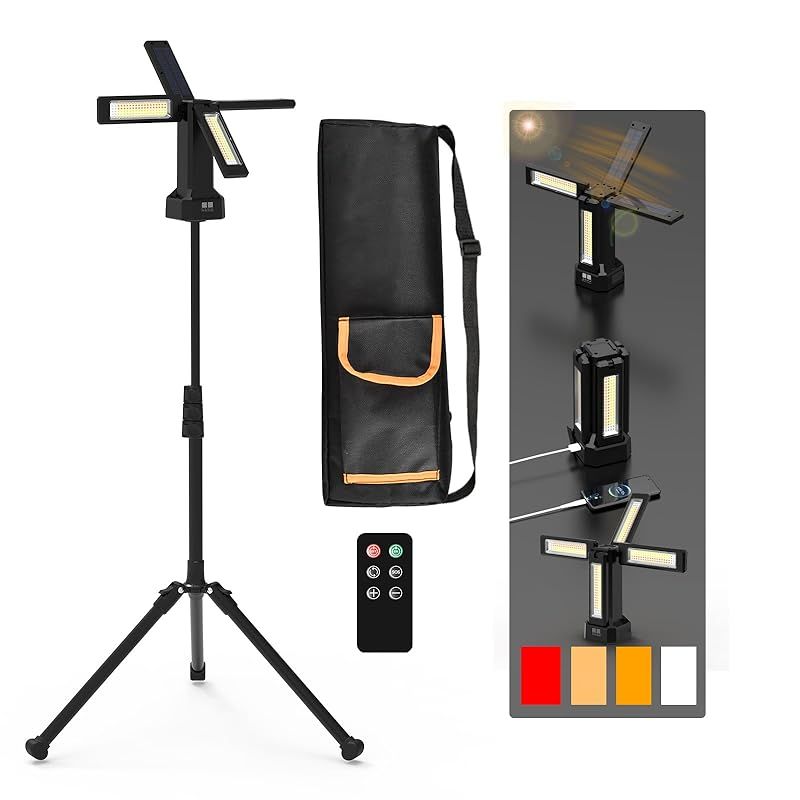 投光器 LED 作業灯 8000lm 超高輝度 USB充電式 ソーラー充電 4つ点灯モード 3色切替 昼光色 温白色 電球色 磁気設計 三脚付き 広角270度 IP65防水 屋内 屋外 アウトドア 集魚灯 野外照明 キャンプ 防災 防犯灯 駐車場灯 緊急照